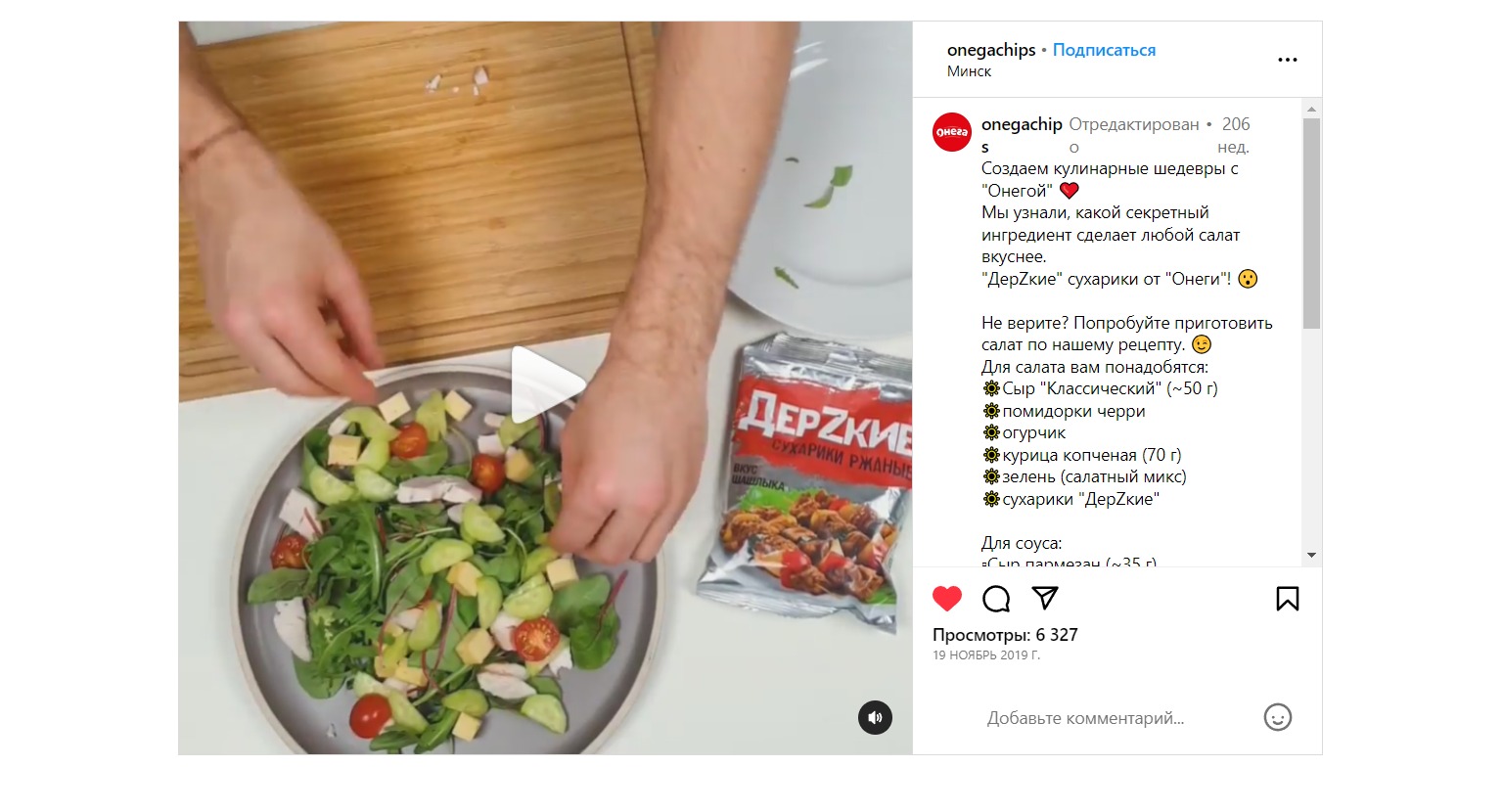 Результат: после проведённых манипуляций в течение 6 месяцев показатели вовлечённости значительно выросли, клиент остался доволен оказанными услугами и подписал договор на полное сопровождение социальных сетей на постоянной основе. Один из самых топовых постов, видео-рецепт, за время сопровождения аккаунта (с октября 2019 по апрель 2020 года) набрал почти 6.5 тысяч просмотров: